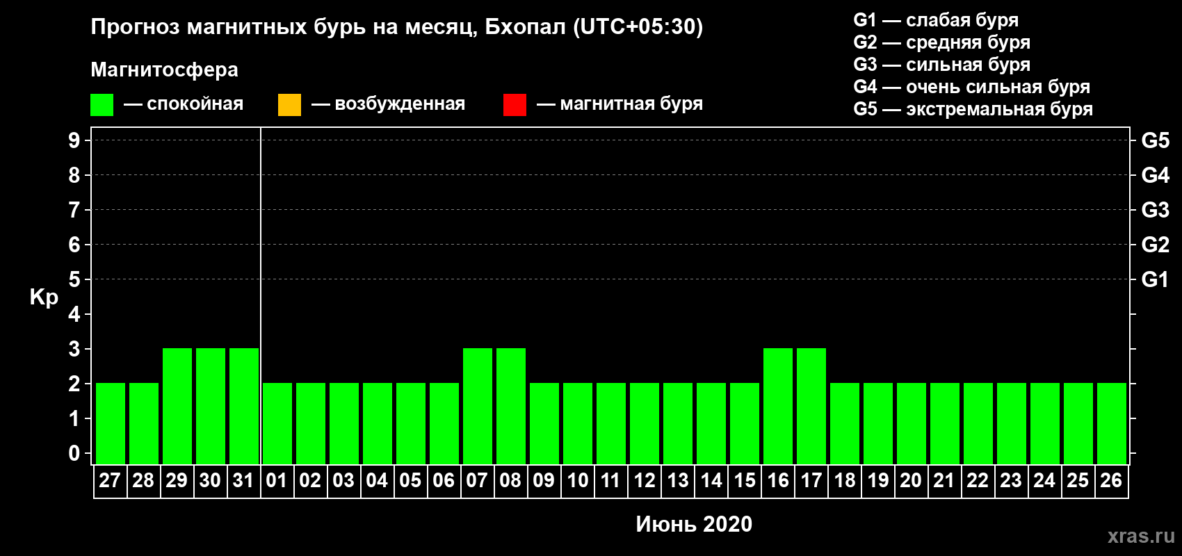 Прогноз магнитных бурь в Бхопале — 27 мая 2020 года