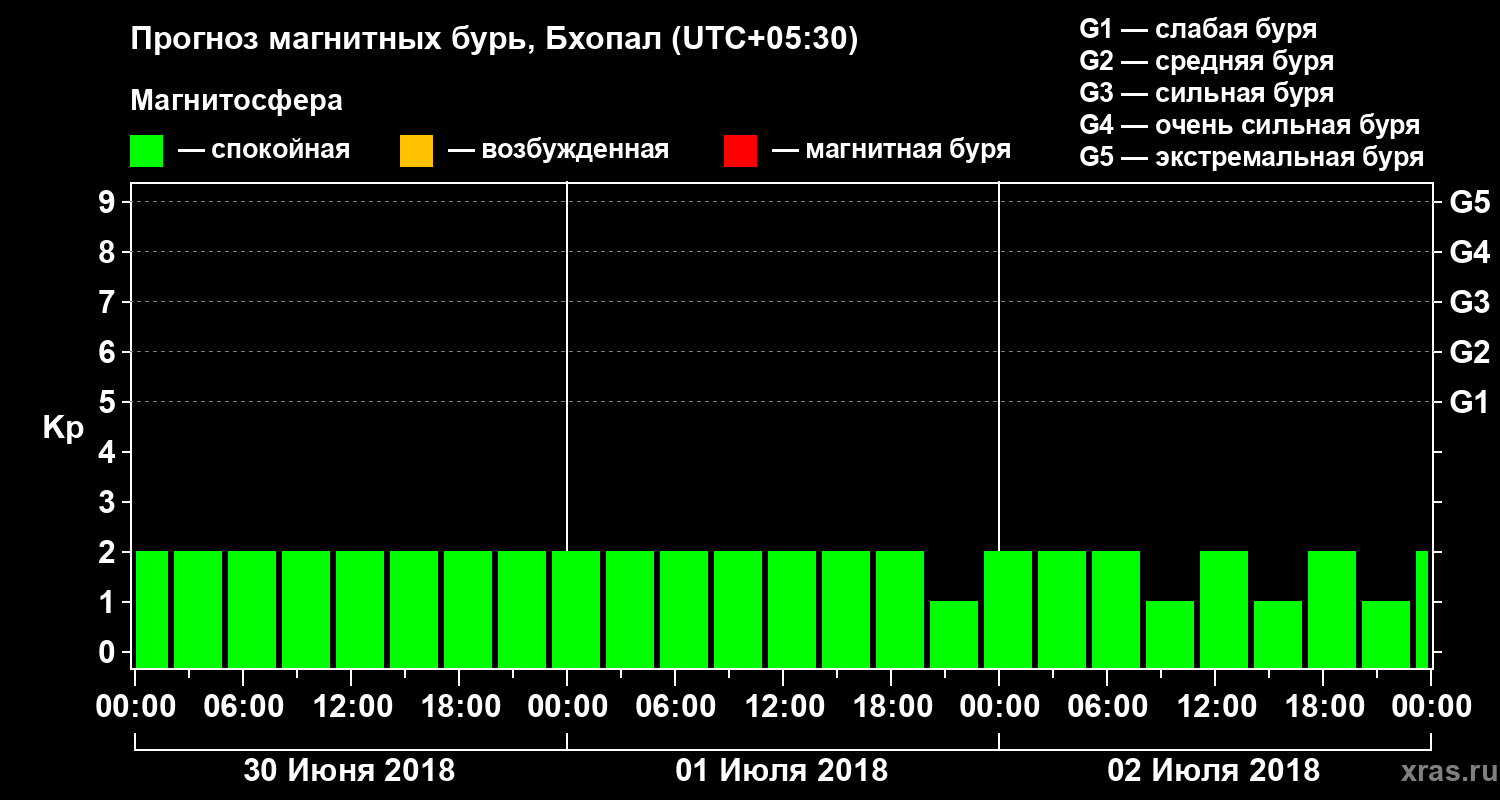 Прогноз магнитных бурь в Бхопале — 30 июня 2018 года