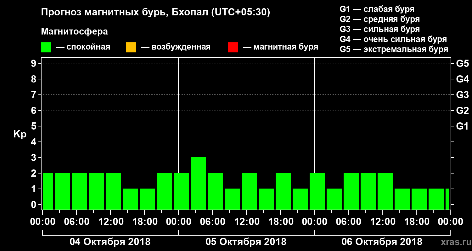 Прогноз магнитных бурь в Бхопале — 4 октября 2018 года