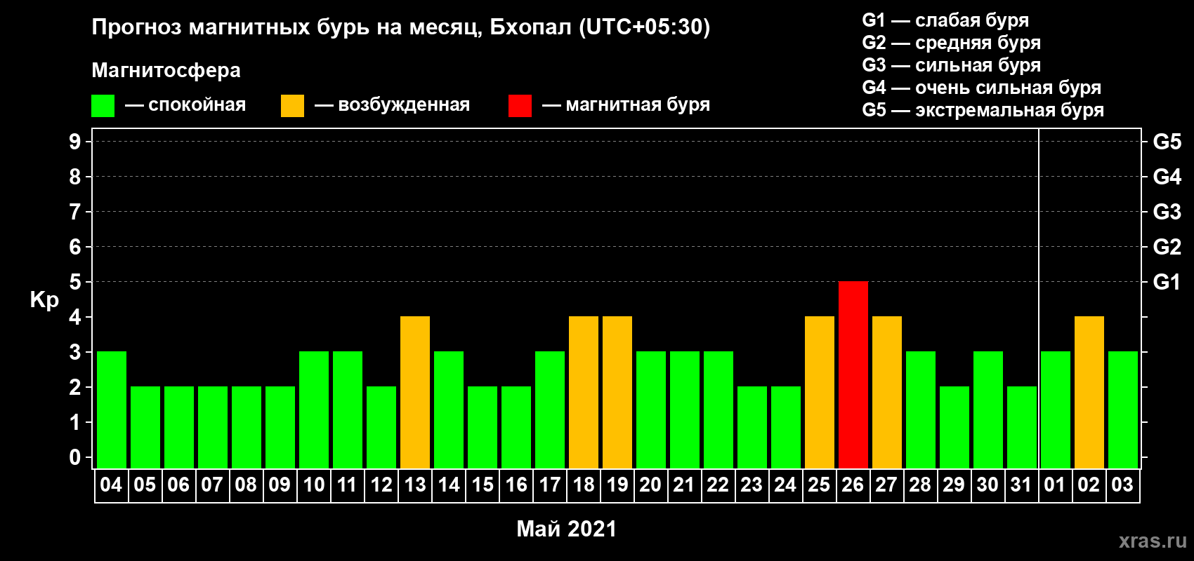 Прогноз магнитных бурь в Бхопале на 4 мая 2021 года