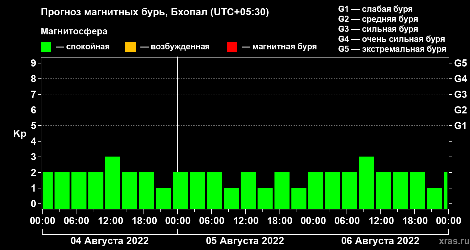 Прогноз магнитных бурь в Бхопале — 4 августа 2022 года