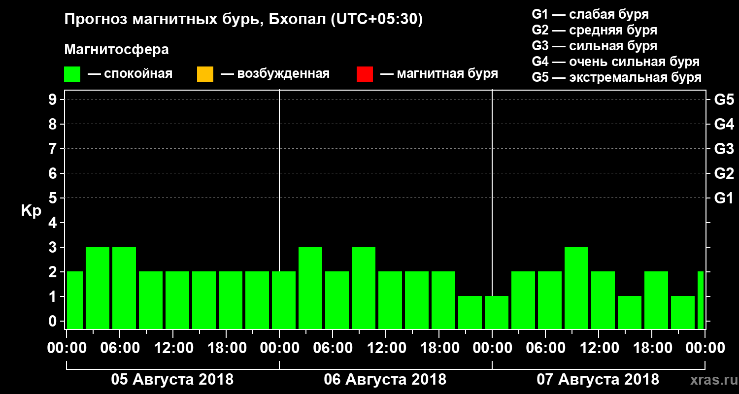 Прогноз магнитных бурь в Бхопале на 5 августа 2018 года