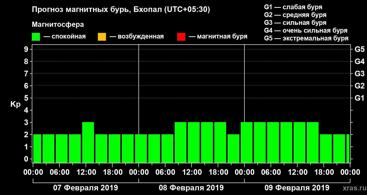 Прогноз магнитных бурь в Бхопале на 7 февраля 2019 года
