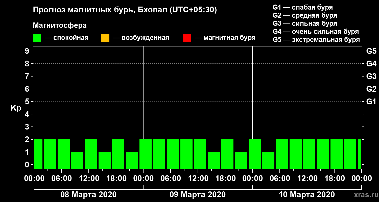 Прогноз магнитных бурь в Бхопале — 8 марта 2020 года
