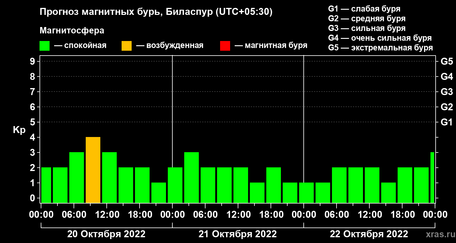 Прогноз магнитных бурь в Биласпуре — 20 октября 2022 года