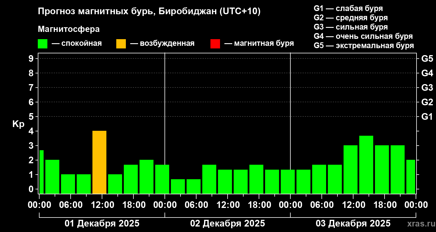 Прогноз магнитных бурь в Биробиджане — 1 декабря 2025 года