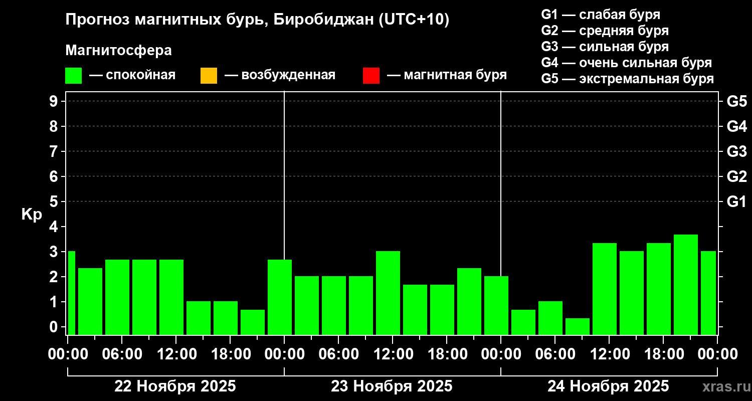Прогноз магнитных бурь в Биробиджане — 22 ноября 2025 года
