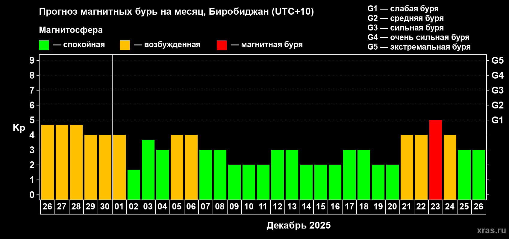 Прогноз магнитных бурь в Биробиджане — 26 ноября 2025 года