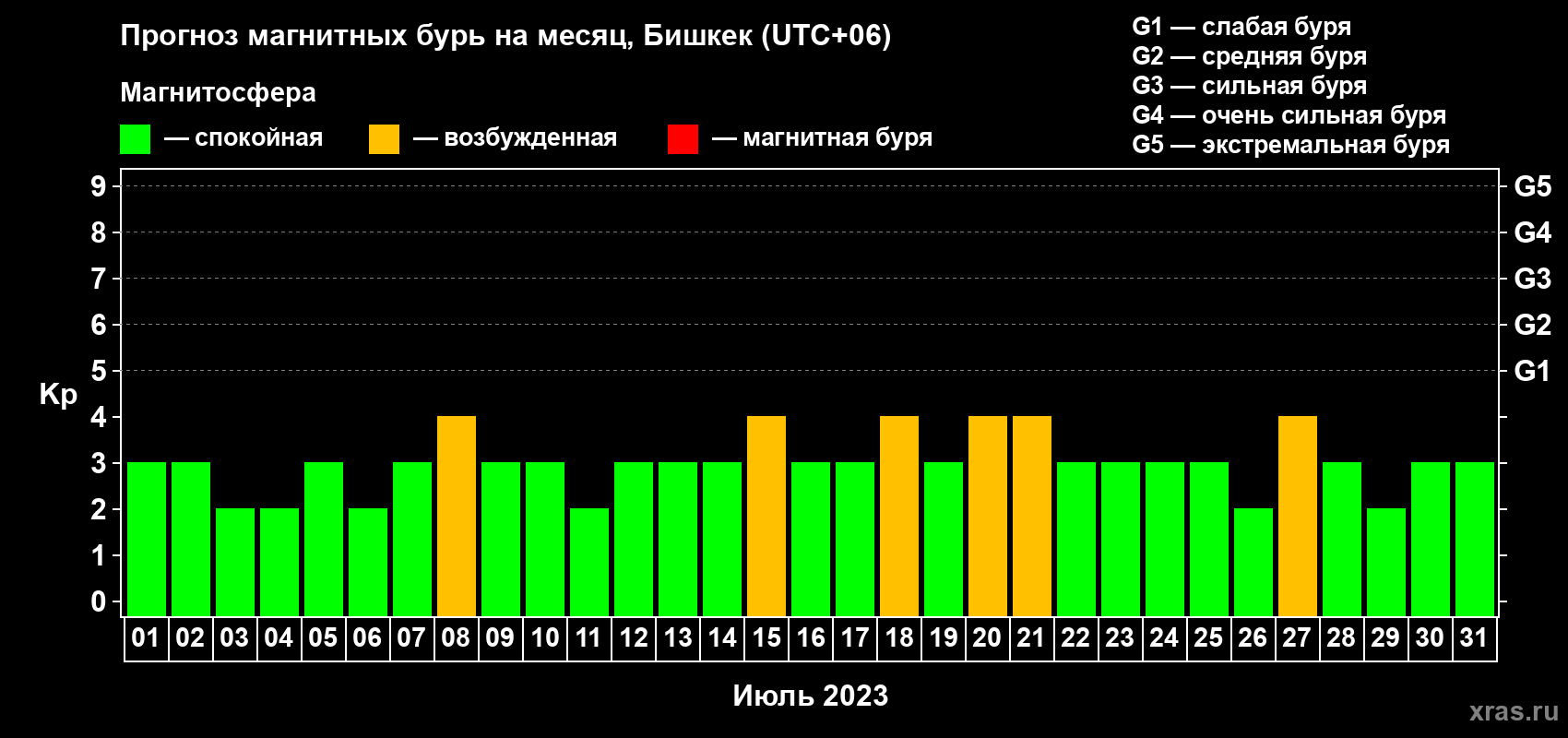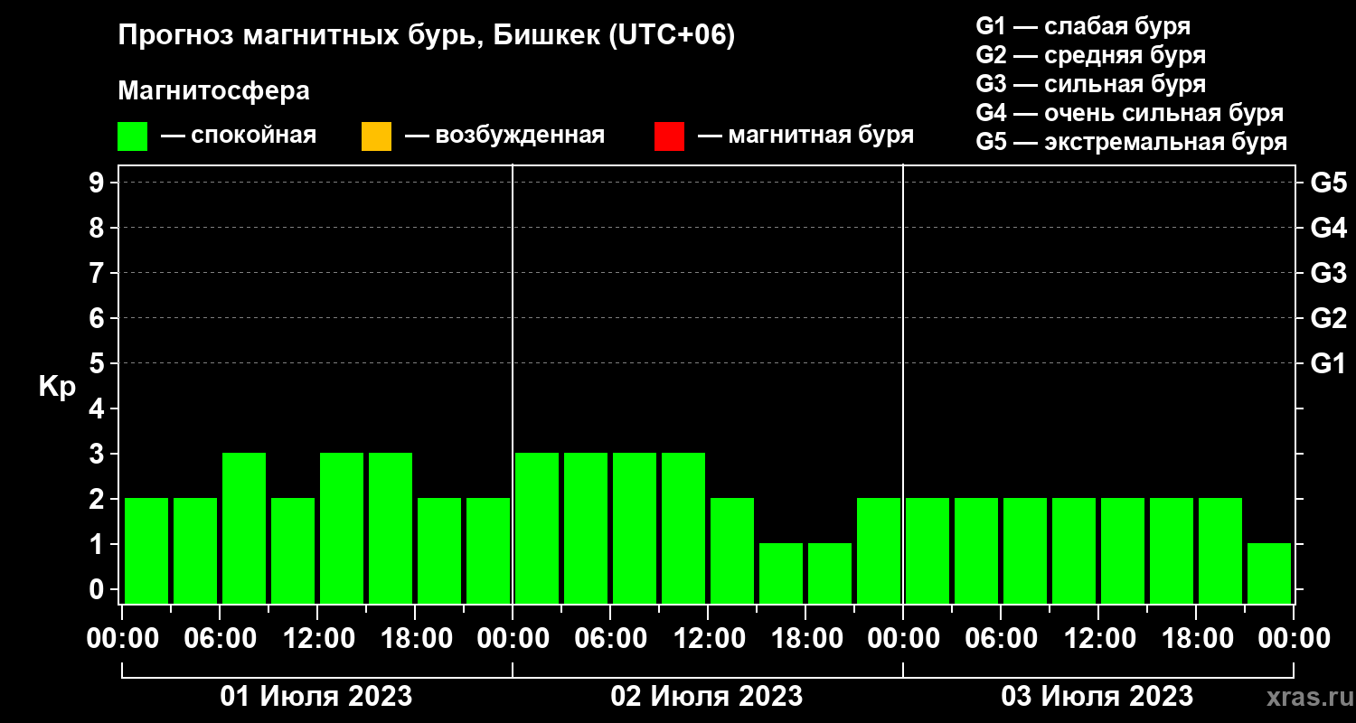 Прогноз магнитных бурь в Бишкеке — 1 июля 2023 года
