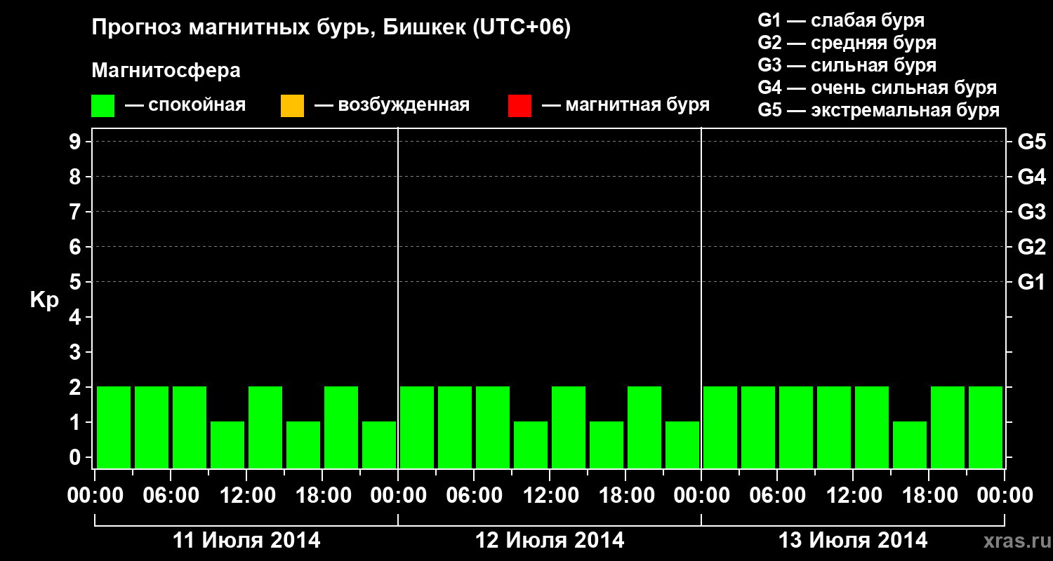 Прогноз магнитных бурь в Бишкеке — 11 июля 2014 года