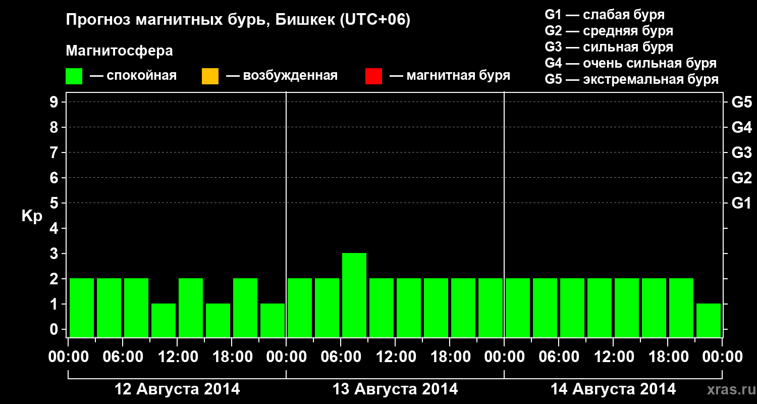Прогноз магнитных бурь в Бишкеке — 12 августа 2014 года