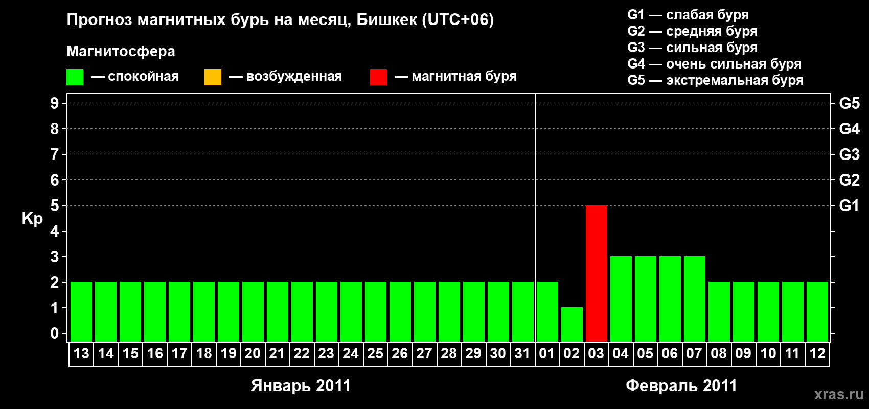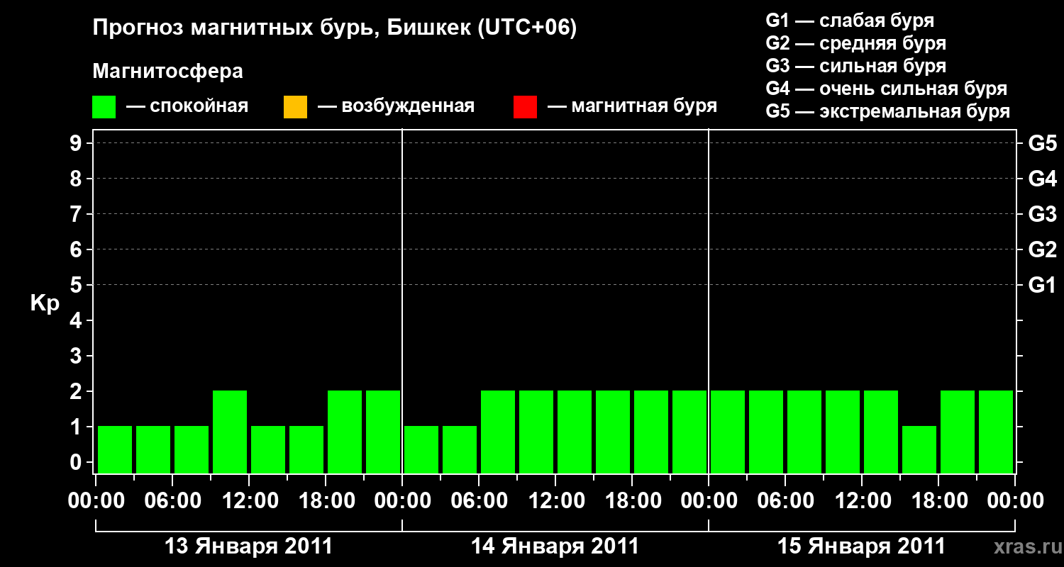 Прогноз магнитных бурь в Бишкеке — 13 января 2011 года