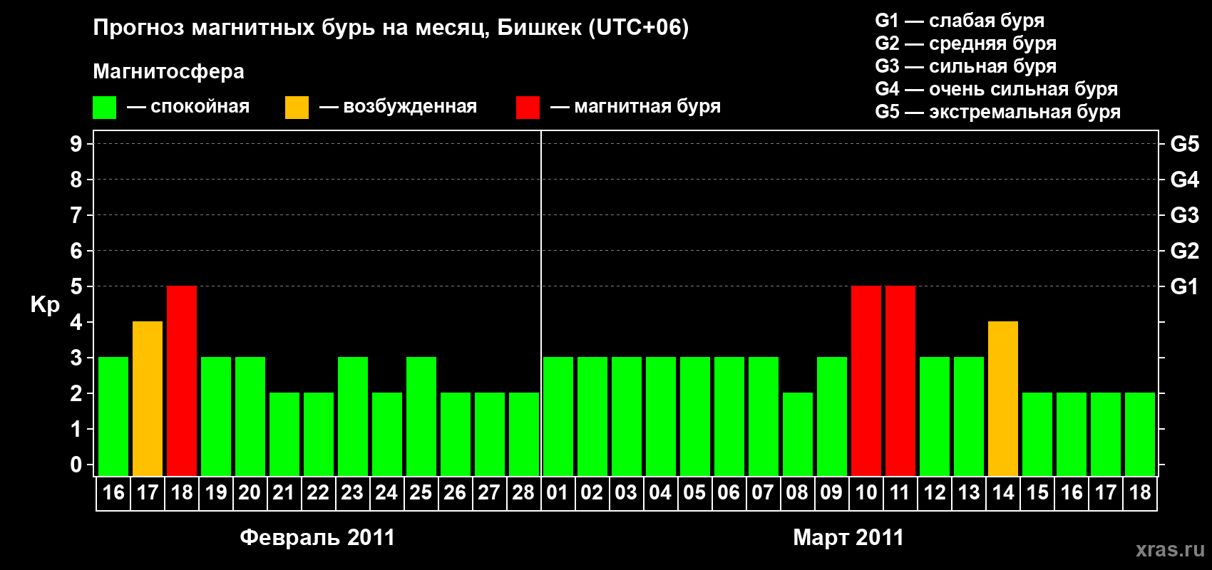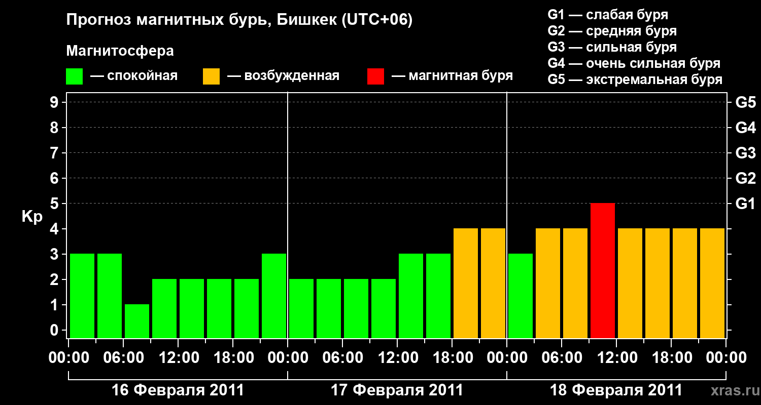 Прогноз магнитных бурь в Бишкеке — 16 февраля 2011 года