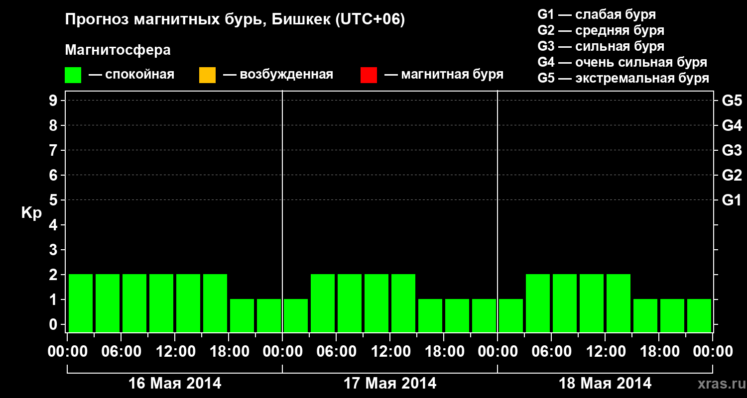 Прогноз магнитных бурь в Бишкеке — 16 мая 2014 года