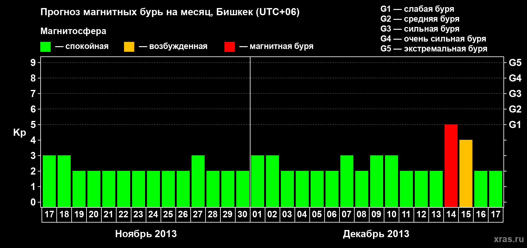 Прогноз магнитных бурь в Бишкеке — 17 ноября 2013 года