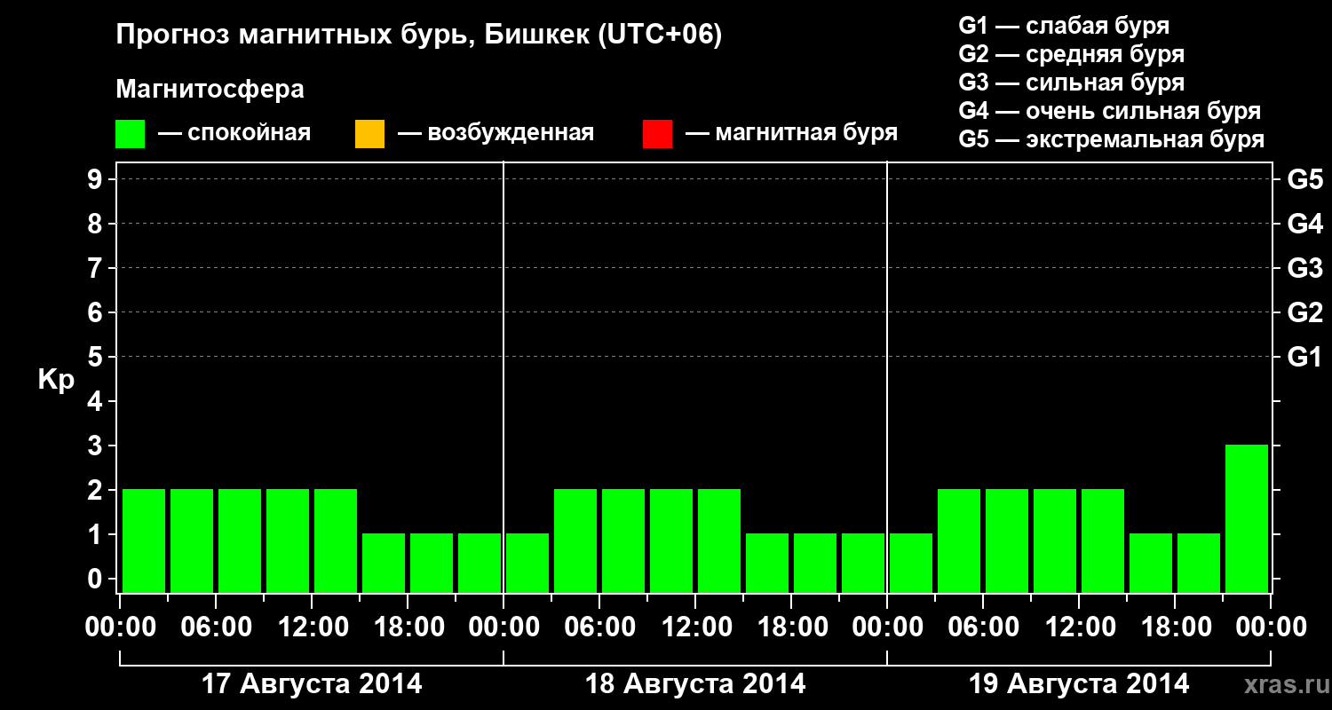 Прогноз магнитных бурь в Бишкеке — 17 августа 2014 года