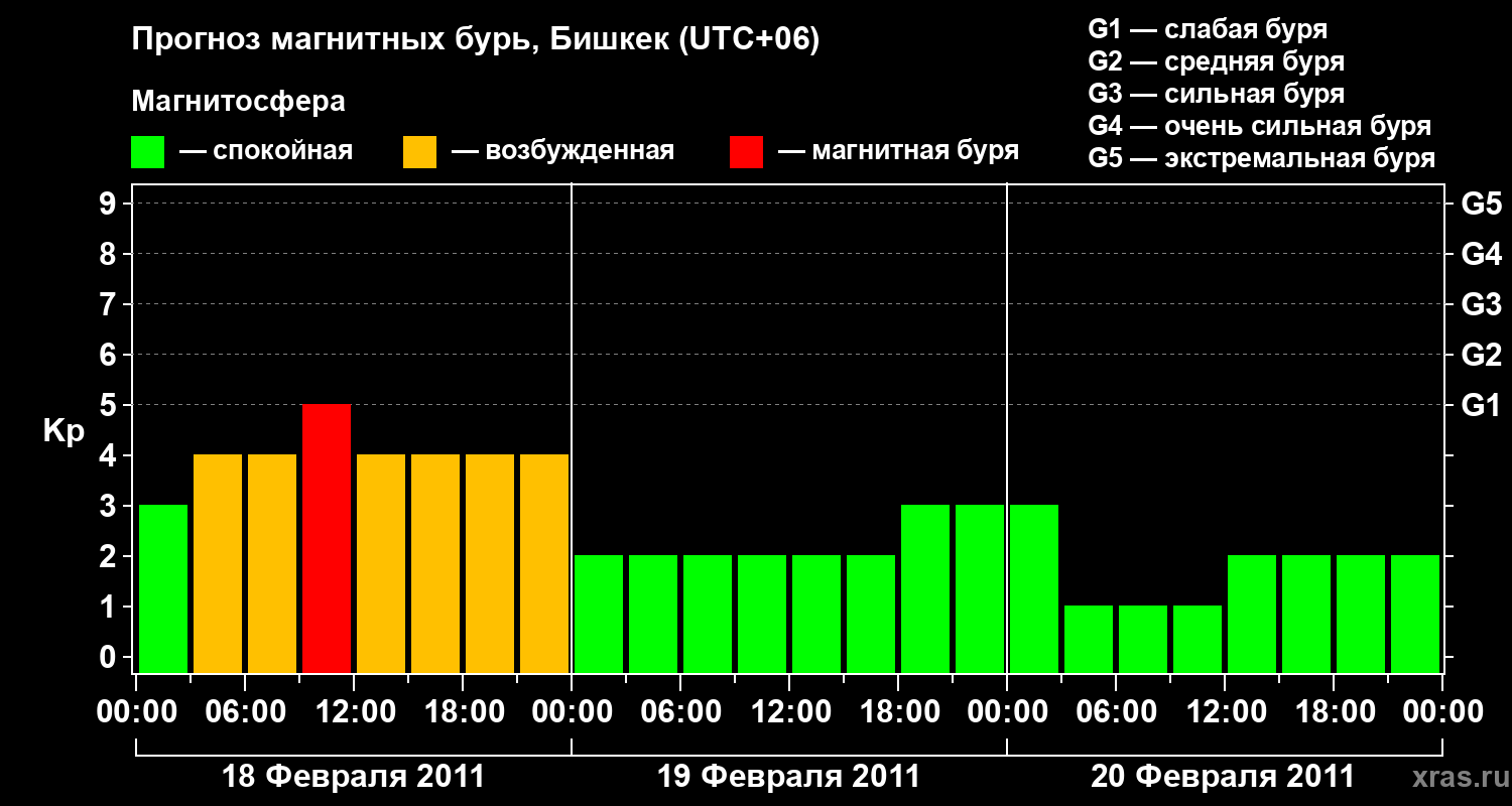 Прогноз магнитных бурь в Бишкеке — 18 февраля 2011 года