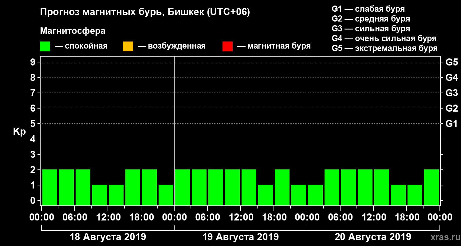 Прогноз магнитных бурь в Бишкеке — 18 августа 2019 года