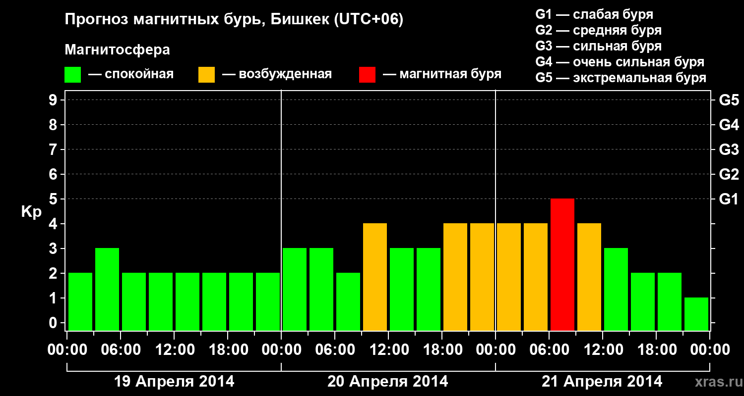 Прогноз магнитных бурь в Бишкеке — 19 апреля 2014 года