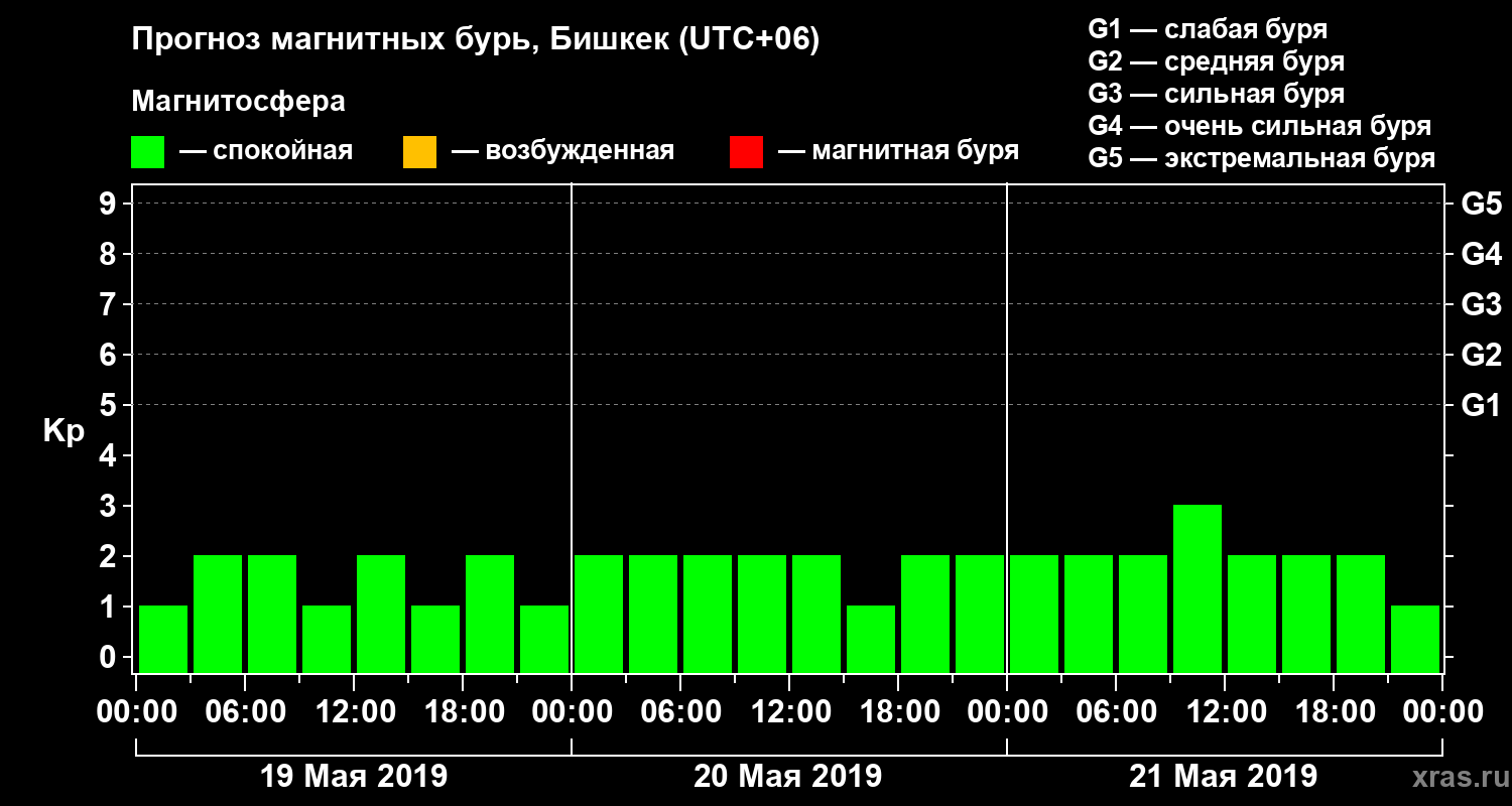 Прогноз магнитных бурь в Бишкеке — 19 мая 2019 года