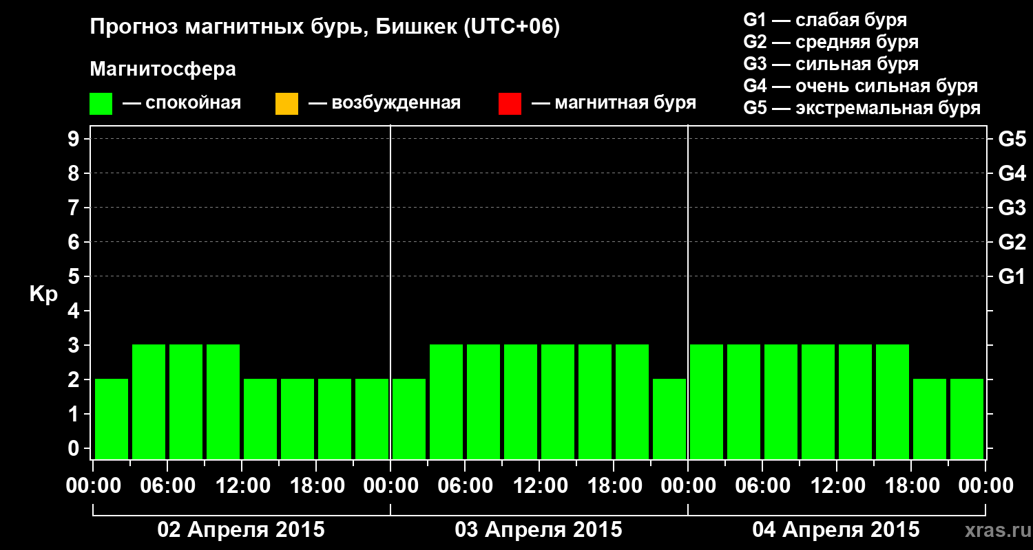 Прогноз магнитных бурь в Бишкеке — 2 апреля 2015 года