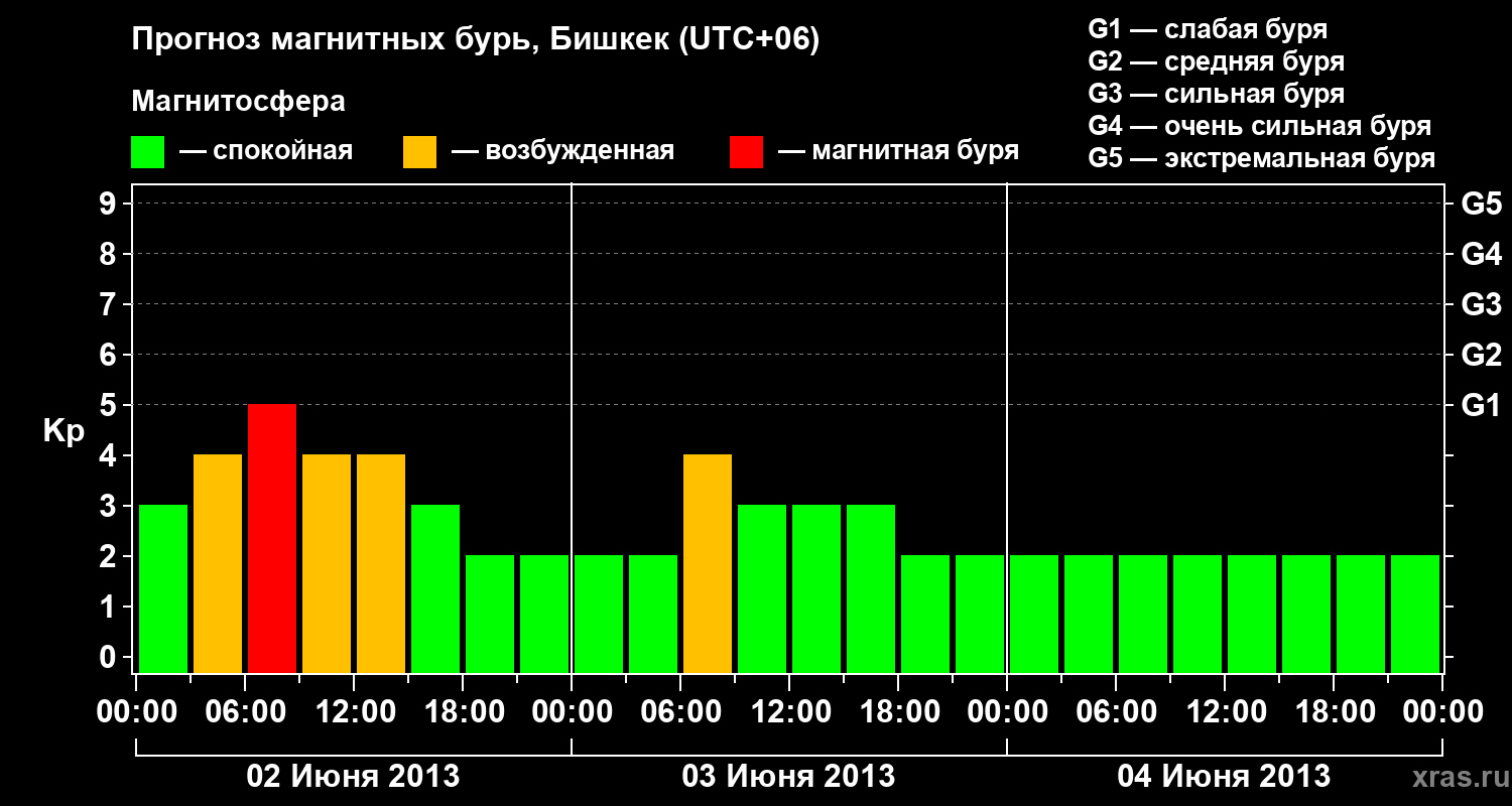 Прогноз магнитных бурь в Бишкеке — 2 июня 2013 года