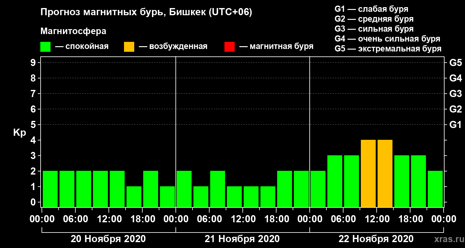 Прогноз магнитных бурь в Бишкеке — 20 ноября 2020 года