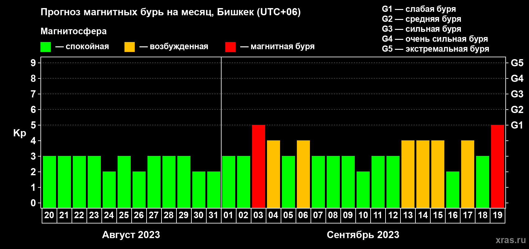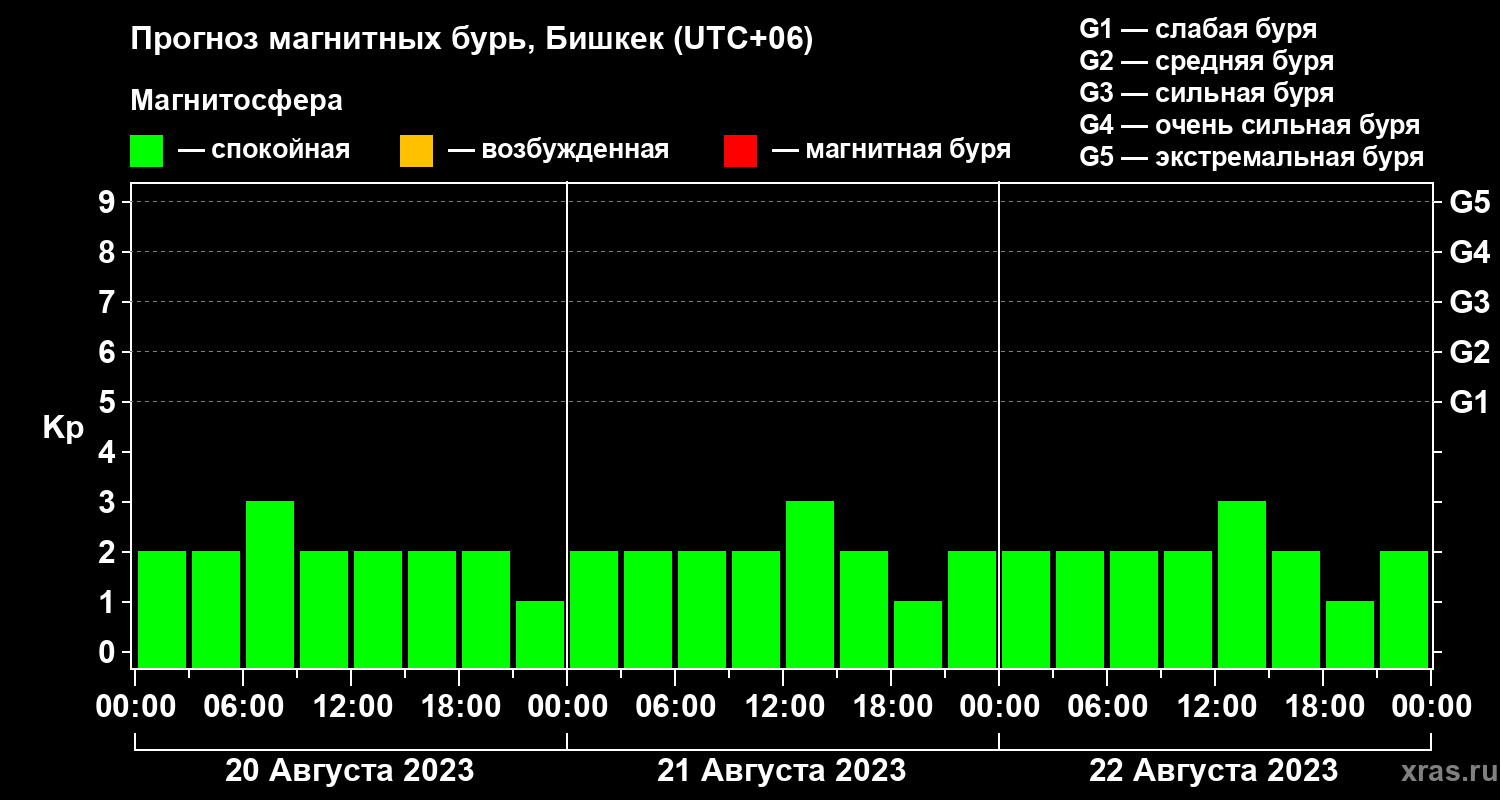Прогноз магнитных бурь в Бишкеке — 20 августа 2023 года