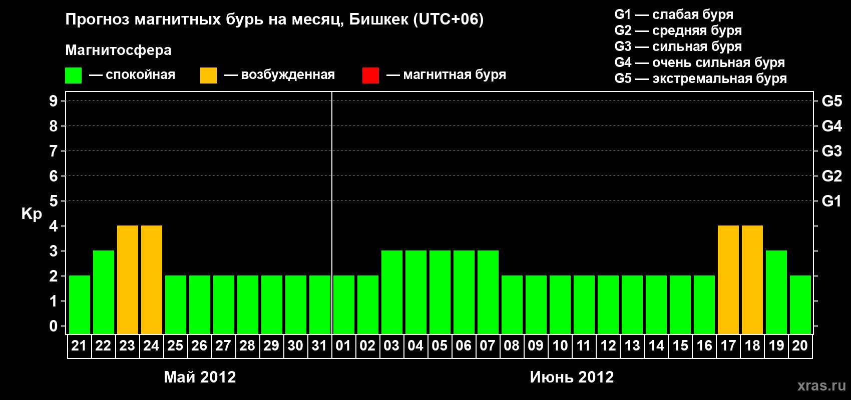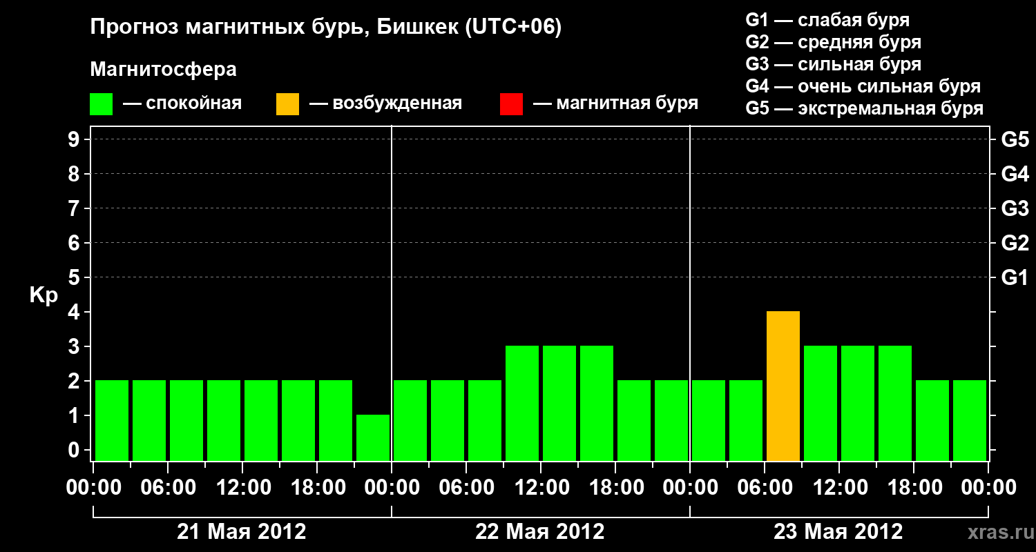 Прогноз магнитных бурь в Бишкеке — 21 мая 2012 года