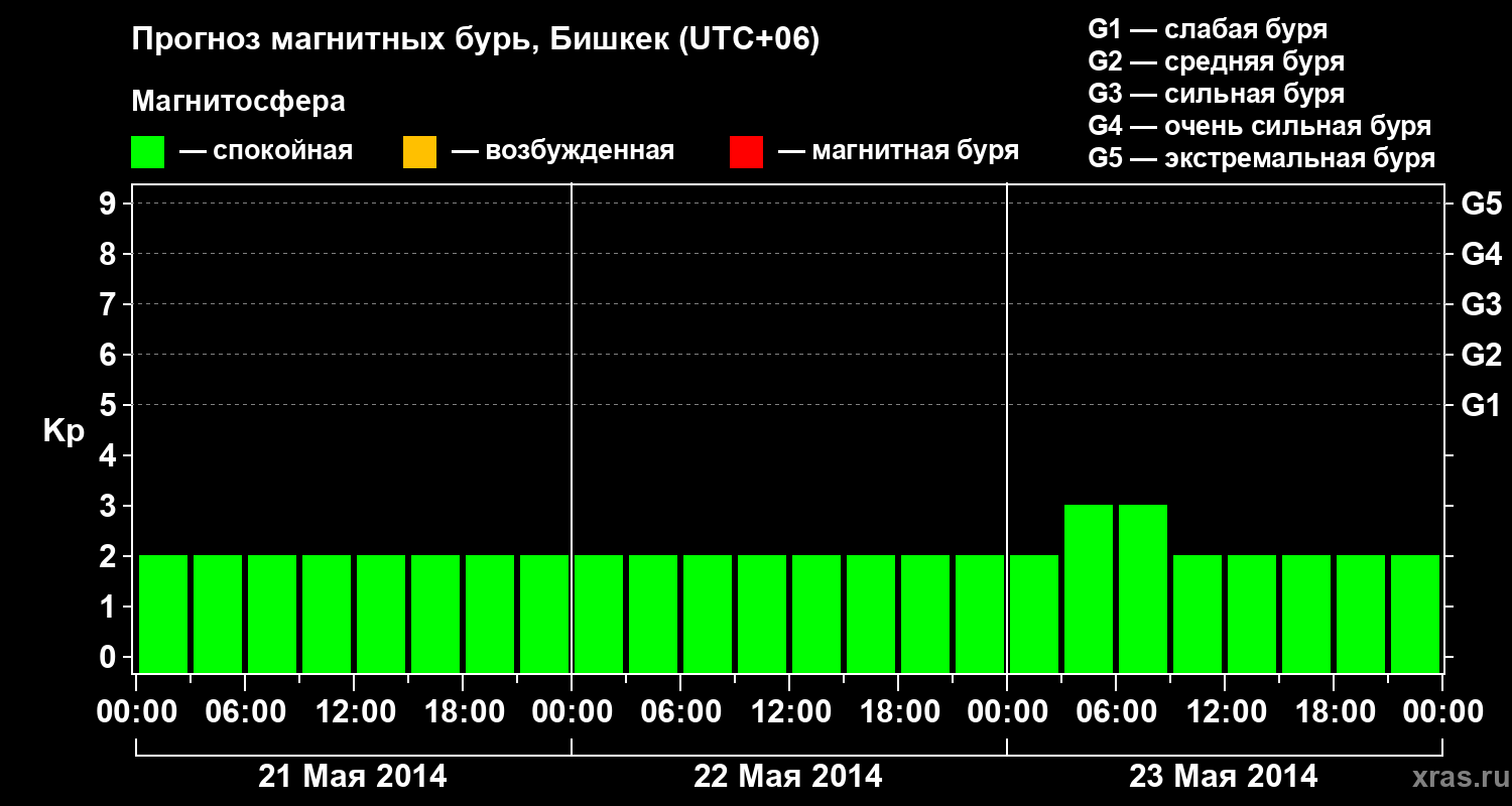 Прогноз магнитных бурь в Бишкеке — 21 мая 2014 года