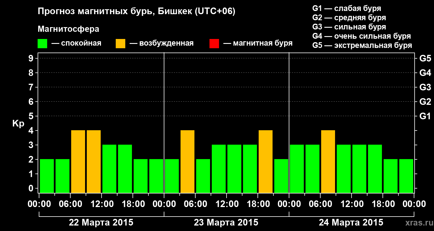 Прогноз магнитных бурь в Бишкеке — 22 марта 2015 года