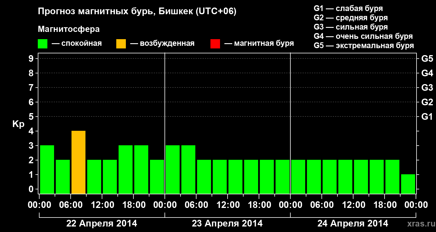 Прогноз магнитных бурь в Бишкеке — 22 апреля 2014 года