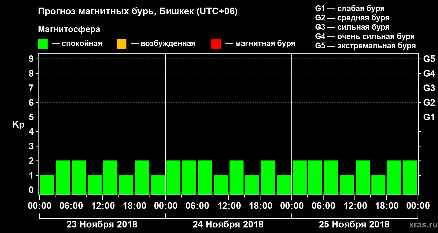 Прогноз магнитных бурь в Бишкеке — 23 ноября 2018 года
