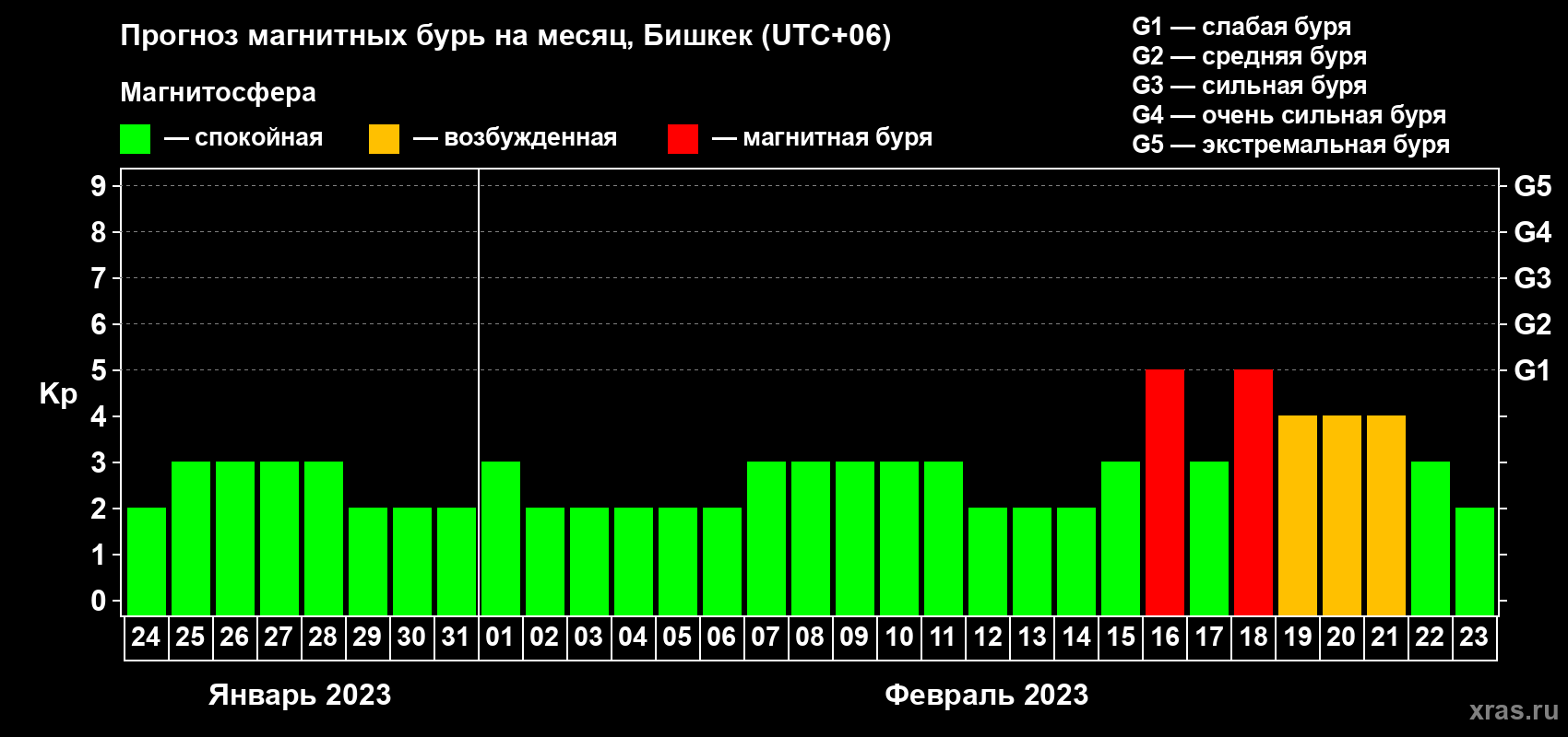 Прогноз магнитных бурь в Бишкеке — 24 января 2023 года