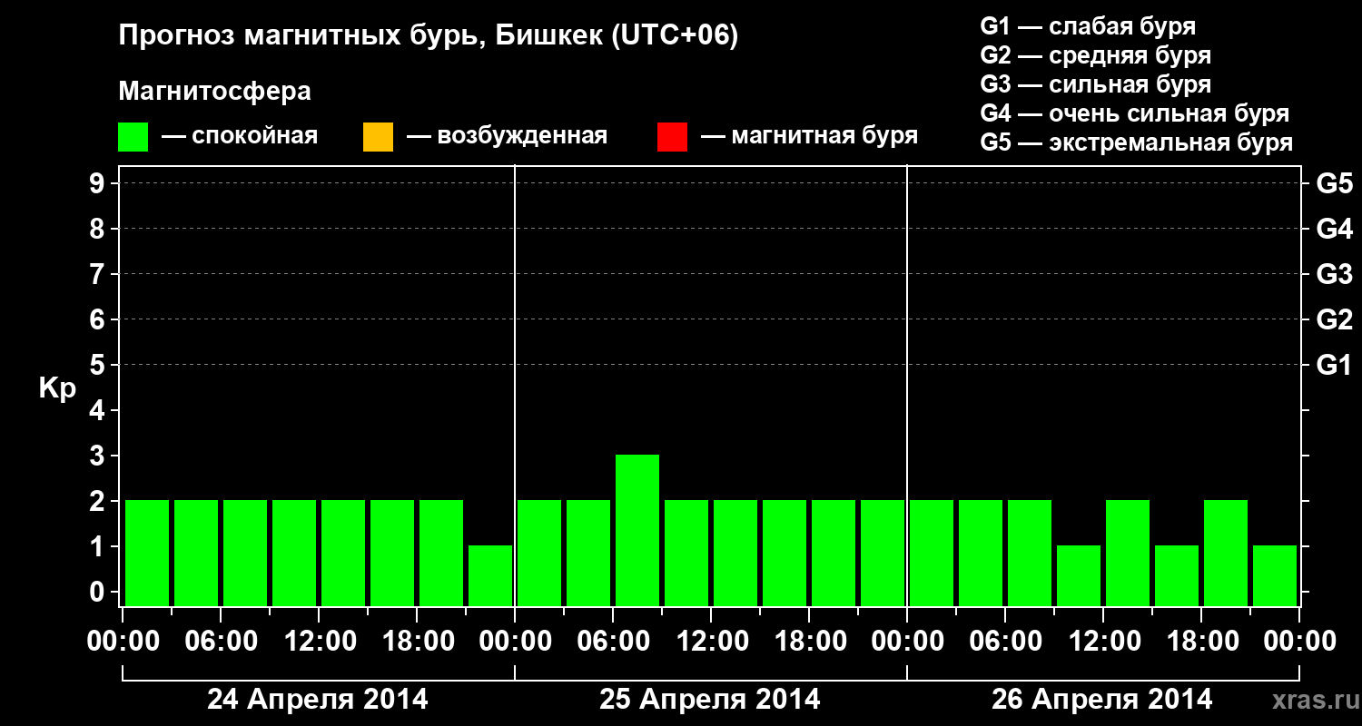 Прогноз магнитных бурь в Бишкеке — 24 апреля 2014 года