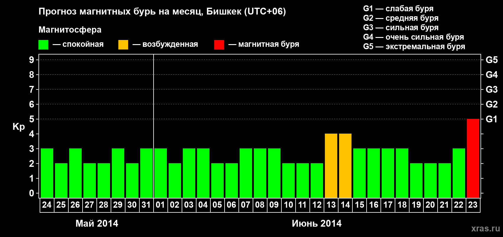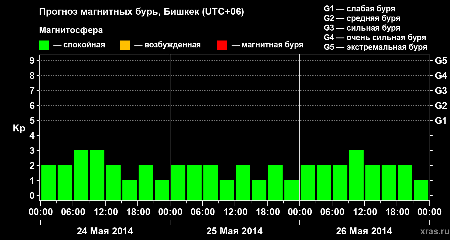 Прогноз магнитных бурь в Бишкеке — 24 мая 2014 года