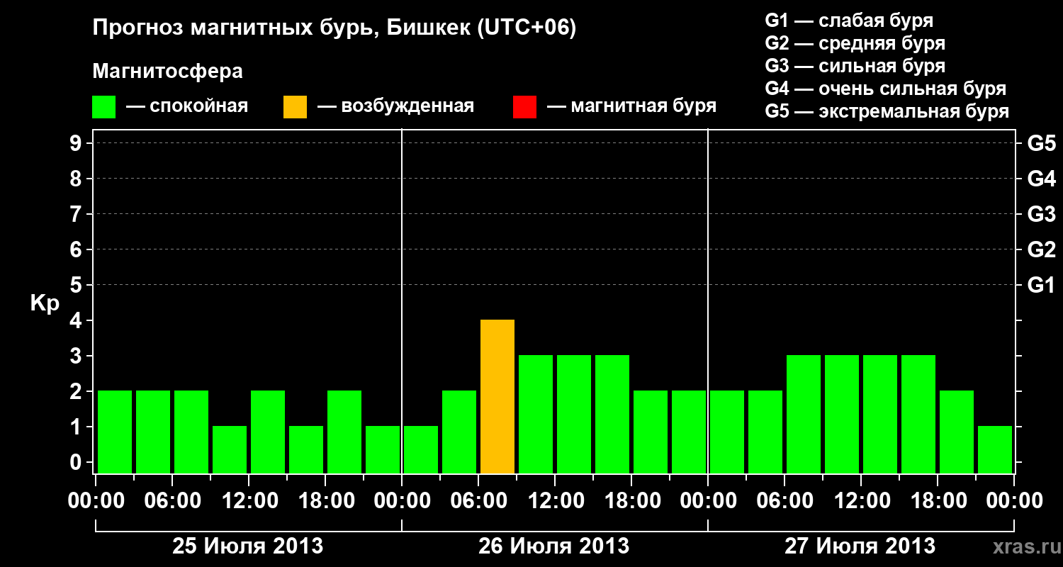 Прогноз магнитных бурь в Бишкеке — 25 июля 2013 года