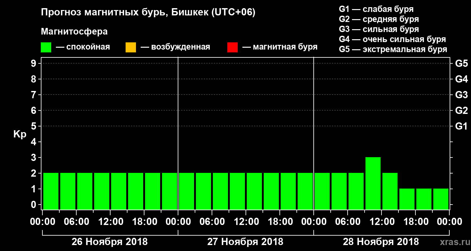 Прогноз магнитных бурь в Бишкеке — 26 ноября 2018 года