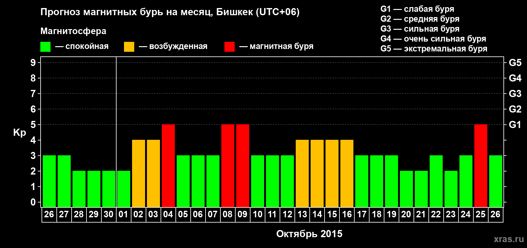 Прогноз магнитных бурь в Бишкеке на 26 сентября 2015 года
