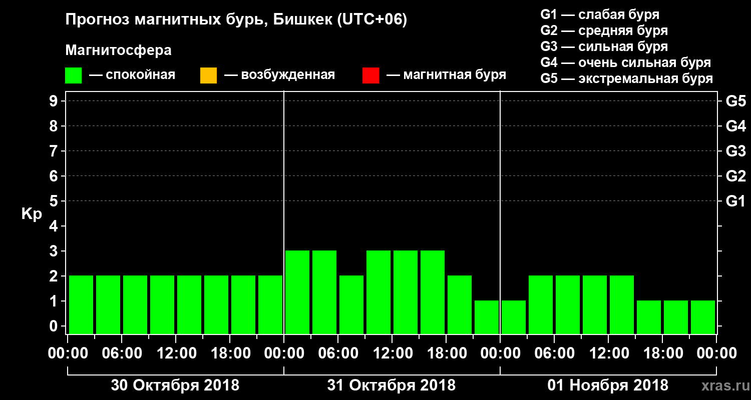 Прогноз магнитных бурь в Бишкеке — 30 октября 2018 года