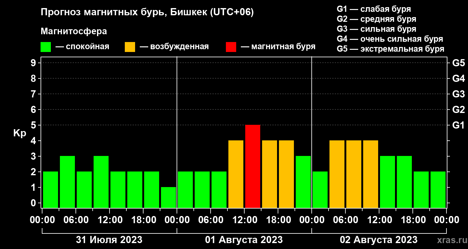 Прогноз магнитных бурь в Бишкеке — 31 июля 2023 года
