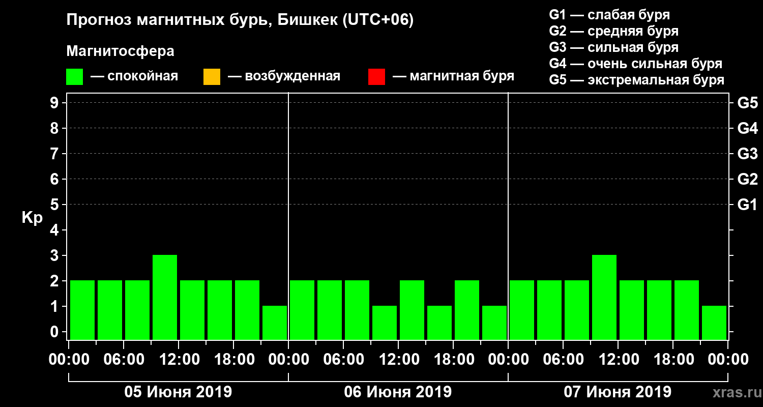 Прогноз магнитных бурь в Бишкеке — 5 июня 2019 года