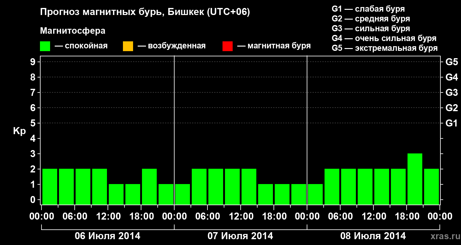 Прогноз магнитных бурь в Бишкеке — 6 июля 2014 года