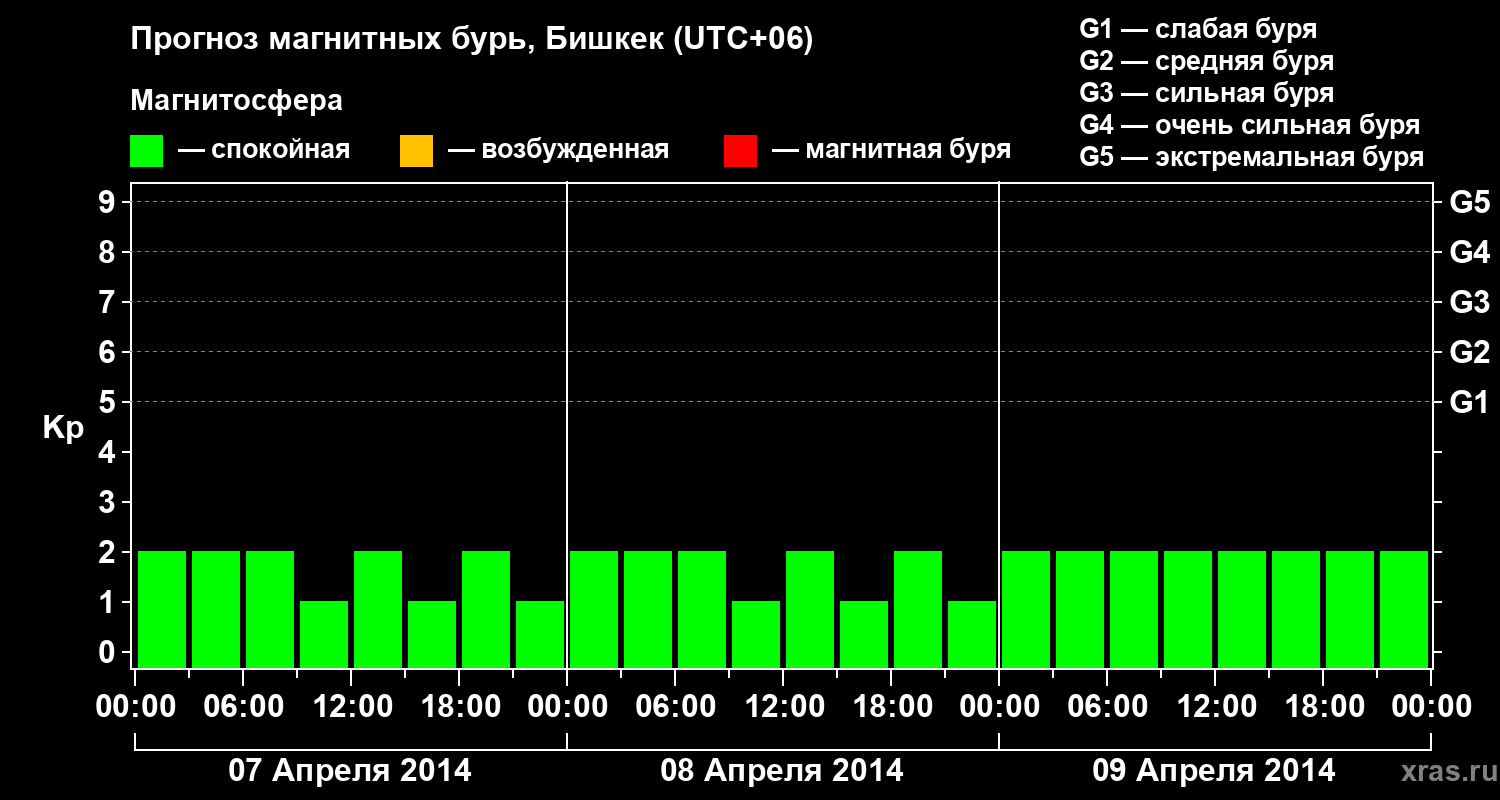 Прогноз магнитных бурь в Бишкеке — 7 апреля 2014 года