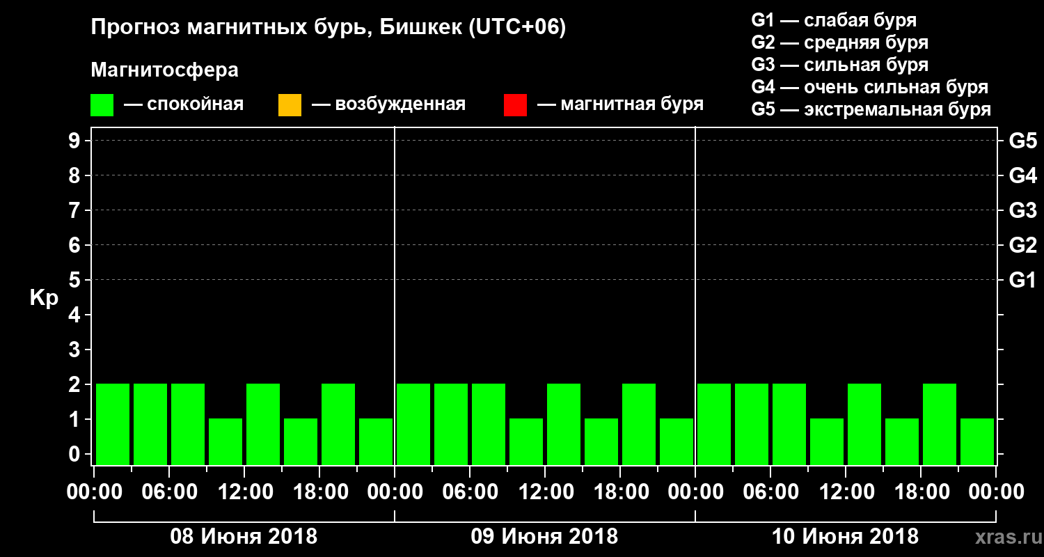 Прогноз магнитных бурь в Бишкеке — 8 июня 2018 года