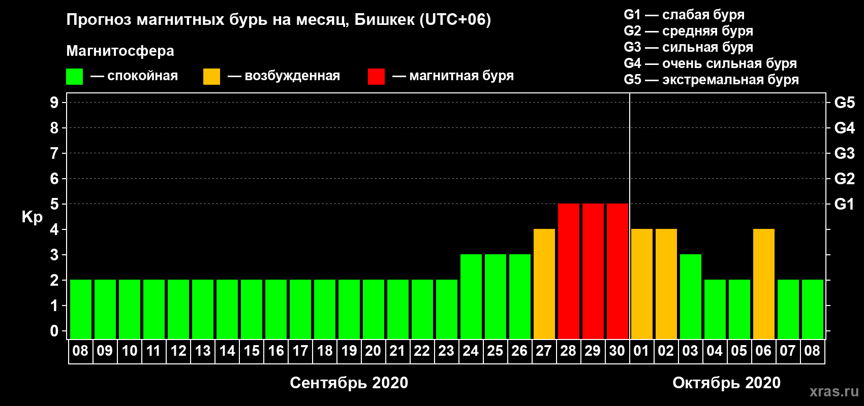 Прогноз магнитных бурь в Бишкеке — 8 сентября 2020 года