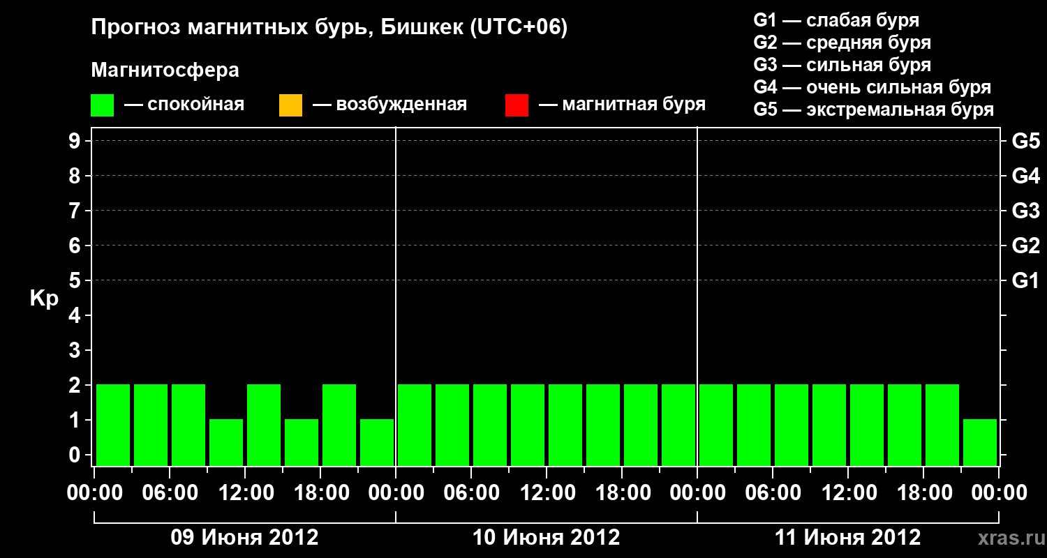 Прогноз магнитных бурь в Бишкеке — 9 июня 2012 года