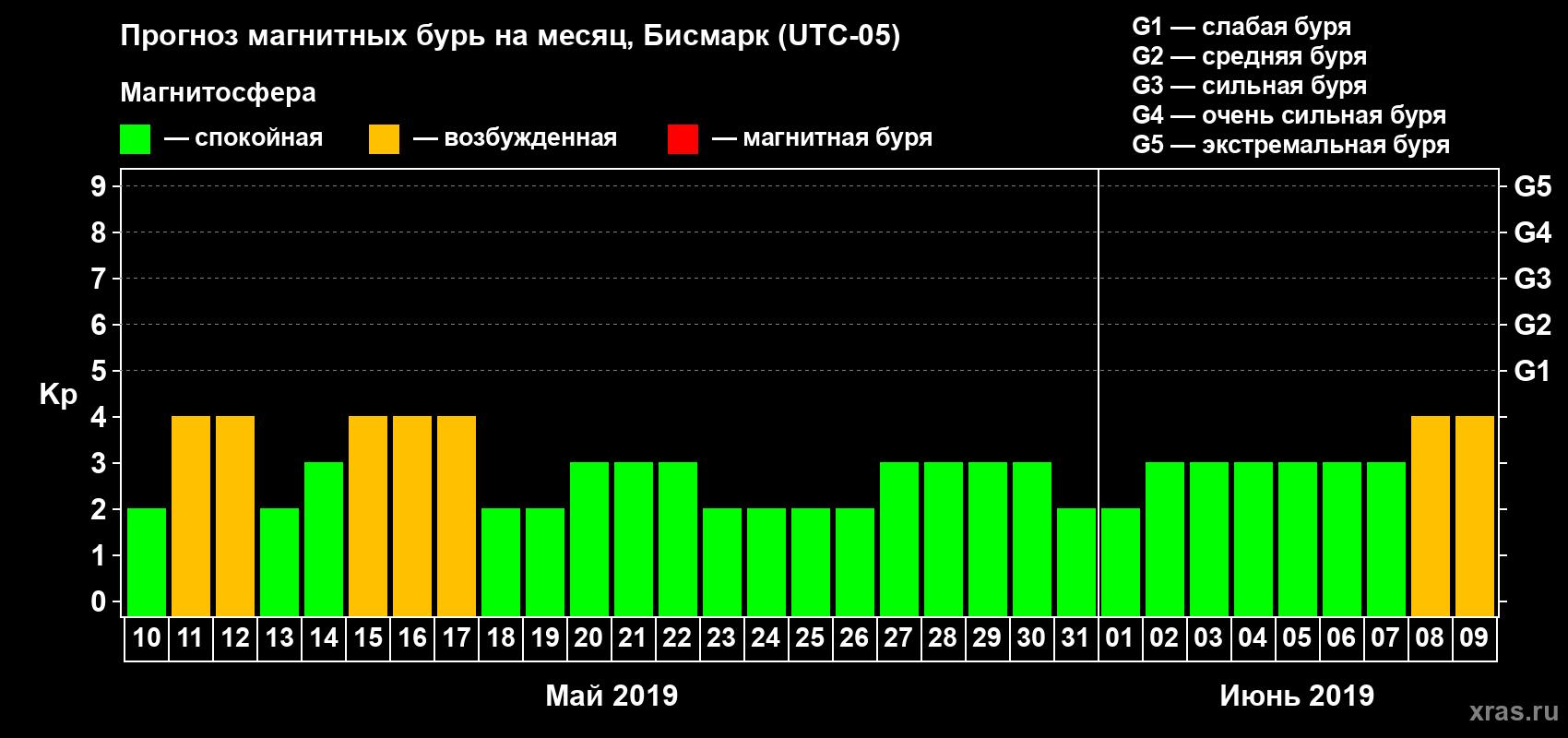 Прогноз магнитных бурь в Бисмарке — 10 мая 2019 года