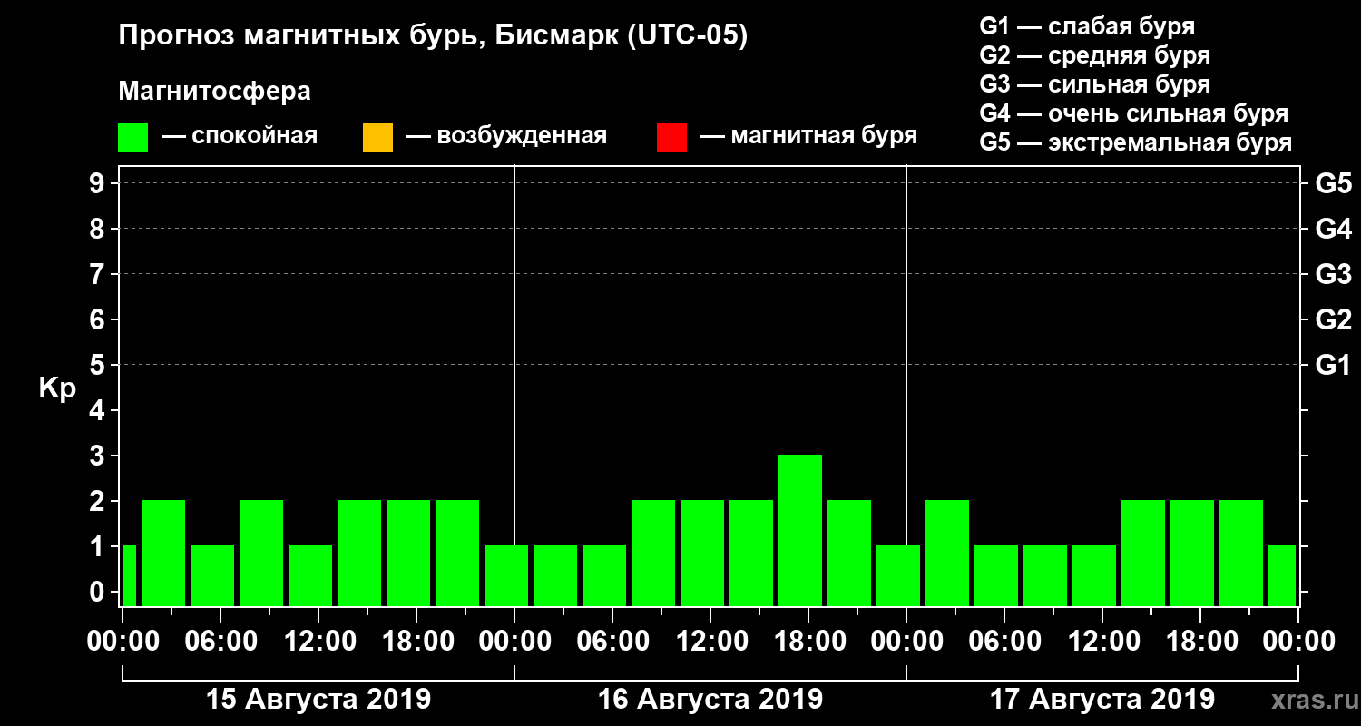 Прогноз магнитных бурь в Бисмарке — 15 августа 2019 года