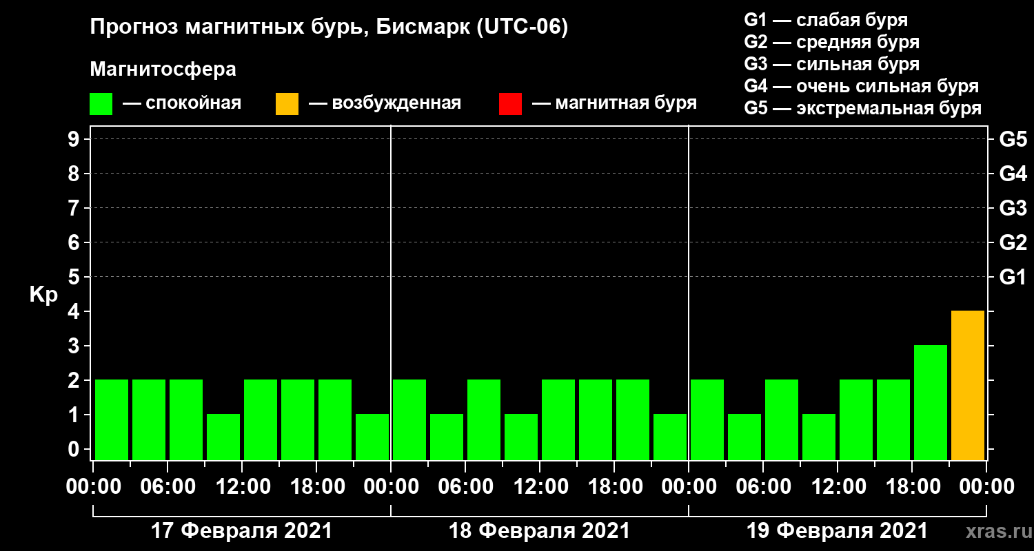 Прогноз магнитных бурь в Бисмарке — 17 февраля 2021 года